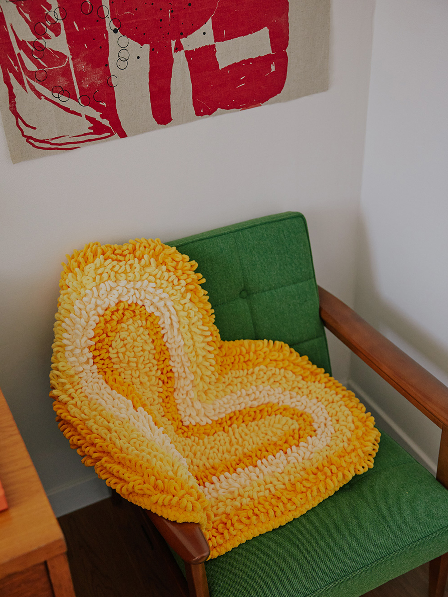 *heart beam rug는 극세사 소재의 부드러운 실로 하트 모앙을 니팅한 100% 핸드메이드 러그입니다.