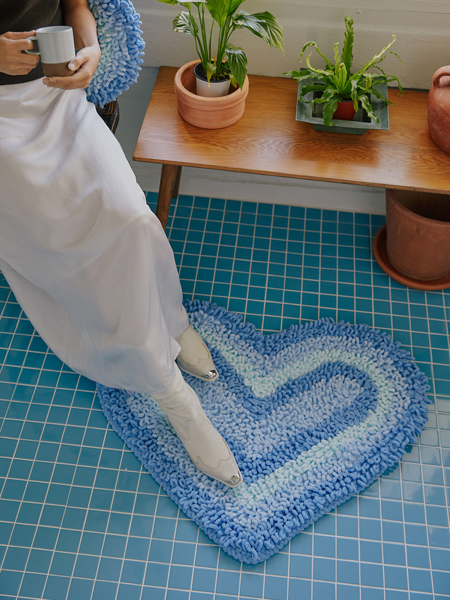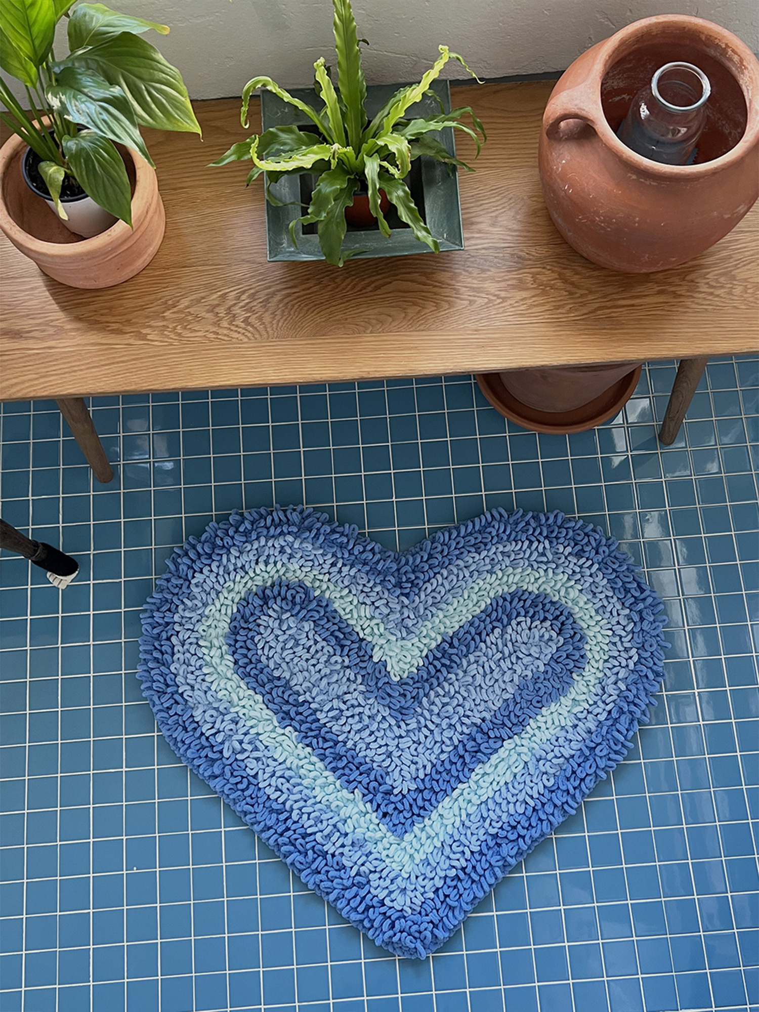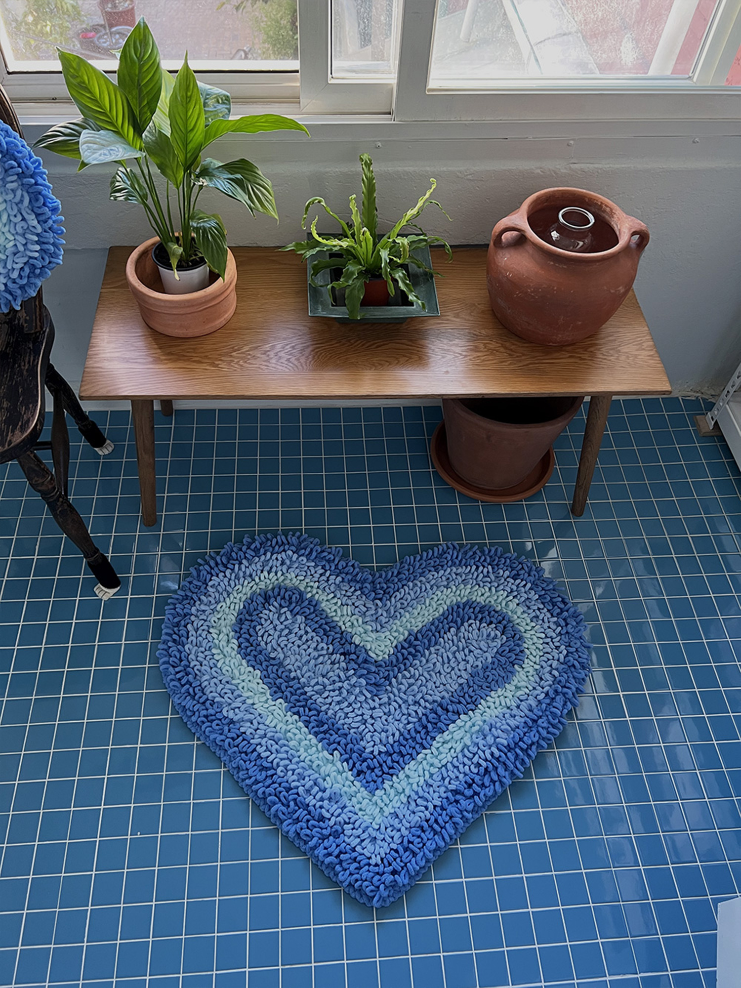 *heart beam rug는 극세사 소재의 부드러운 실로 하트 모앙을 니팅한 100% 핸드메이드 러그입니다.