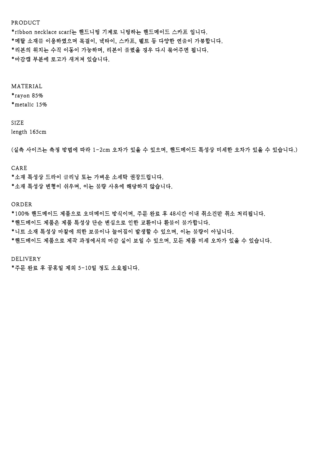 *ribbon necklace scarf는 핸드니팅 기계로 니팅하는 핸드메이드 스카프 입니다.