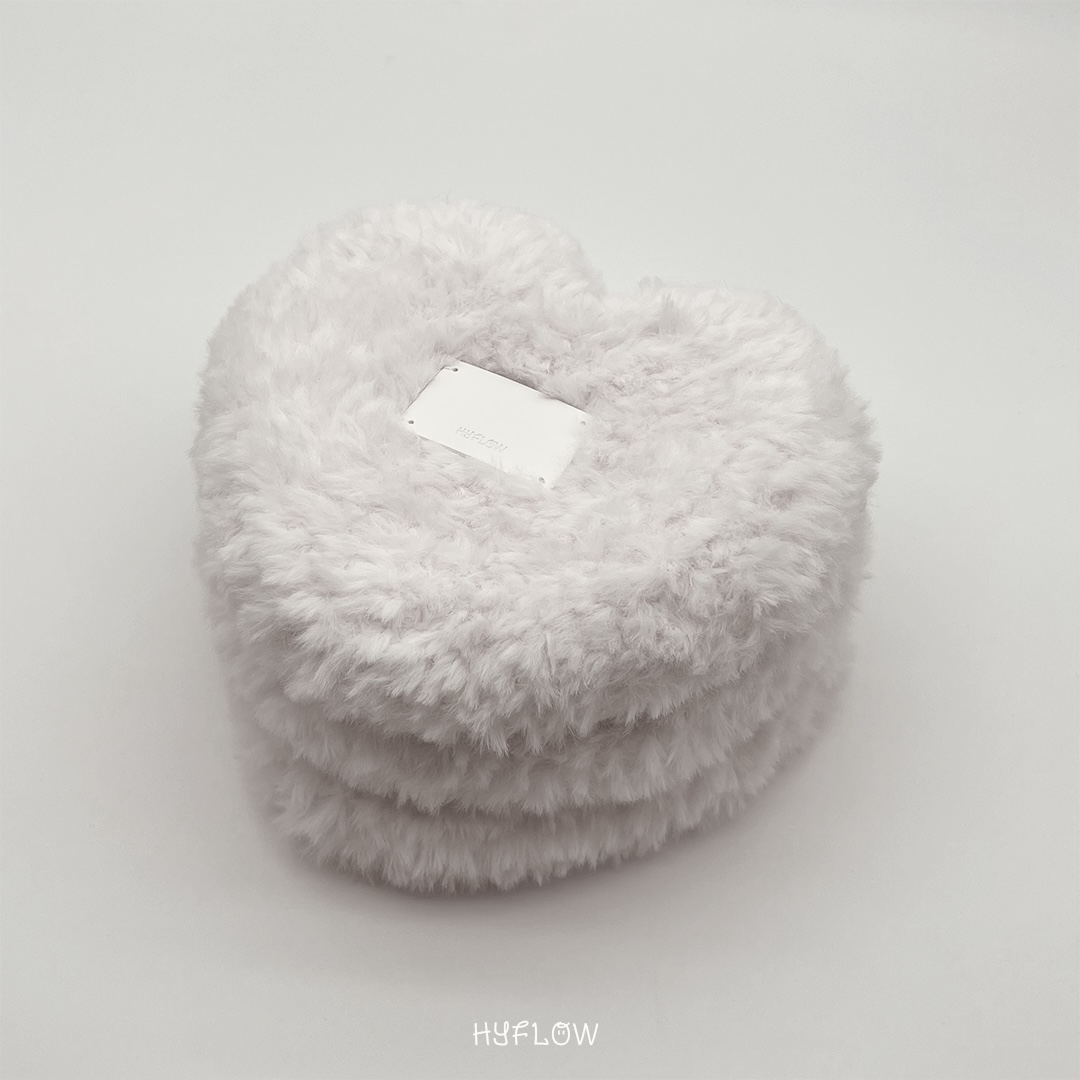 * 퍼 니트의 부드러운 소재 특성상 압력에 의해 형태 무너짐이 발생할 수 있습니다. 옆 기둥을 세우는 느낌으로 하트 형태를 잡아주면 본래의 모습으로 돌아옵니다!