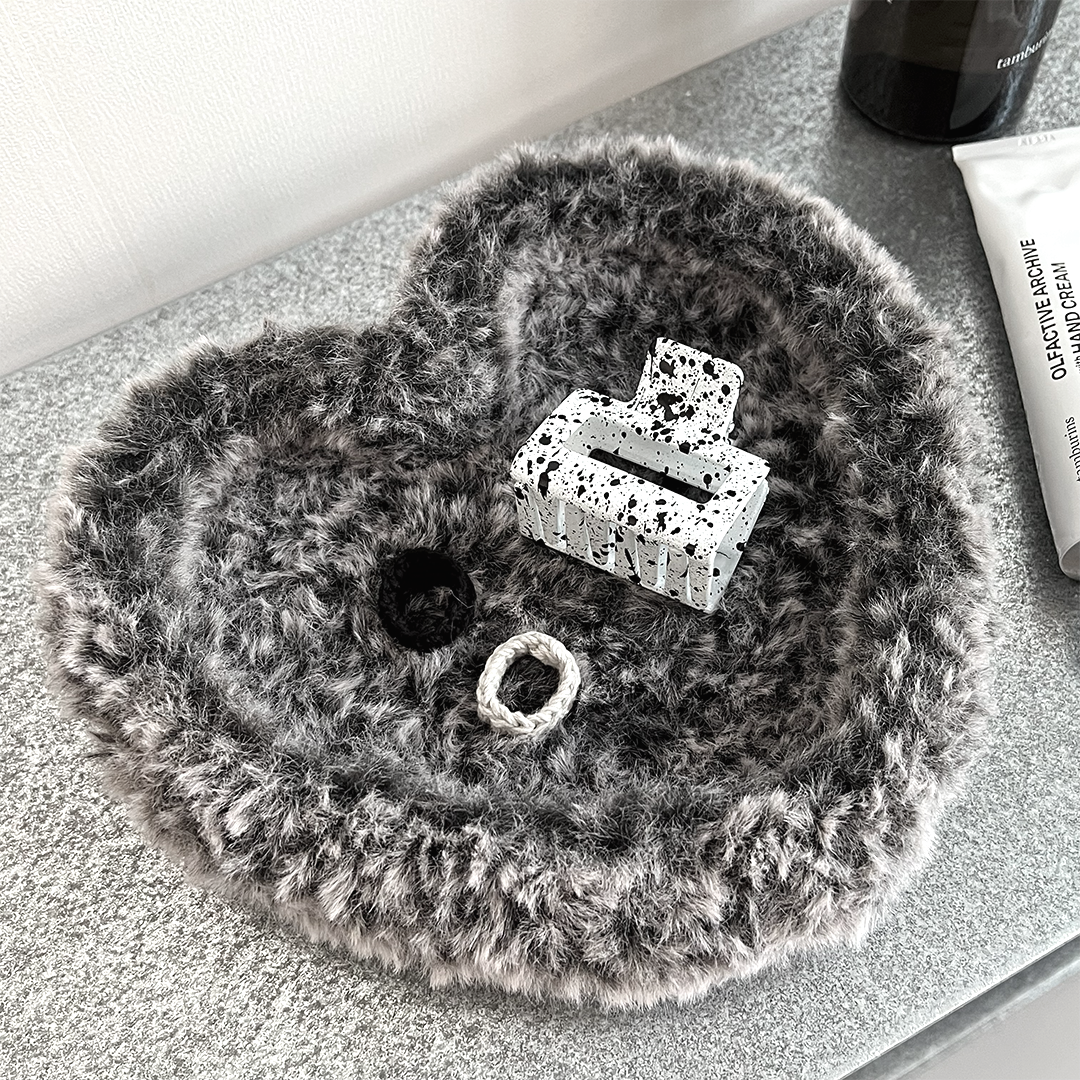 인조털로 제작된 부드러움을 가진 사랑스러운 하트 모양의 트레이 입니다.