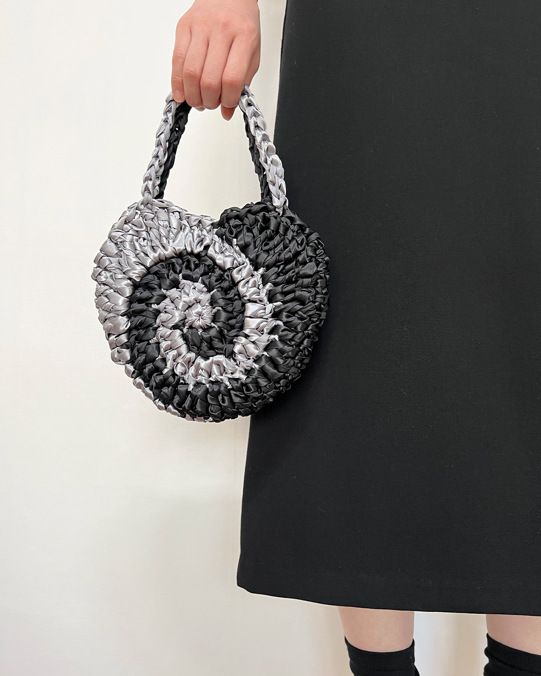 스트랩 끈의 색상도 앞 뒤 다르게 니팅된 가방입니다.