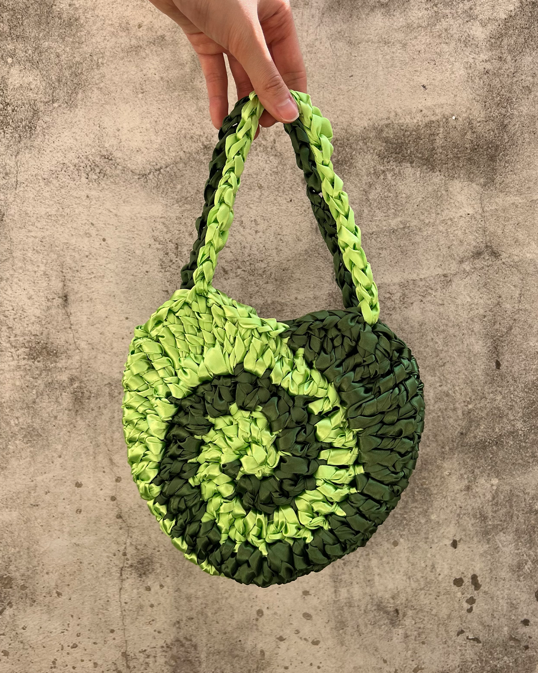 스트랩 끈의 색상도 앞 뒤 다르게 니팅된 가방입니다.